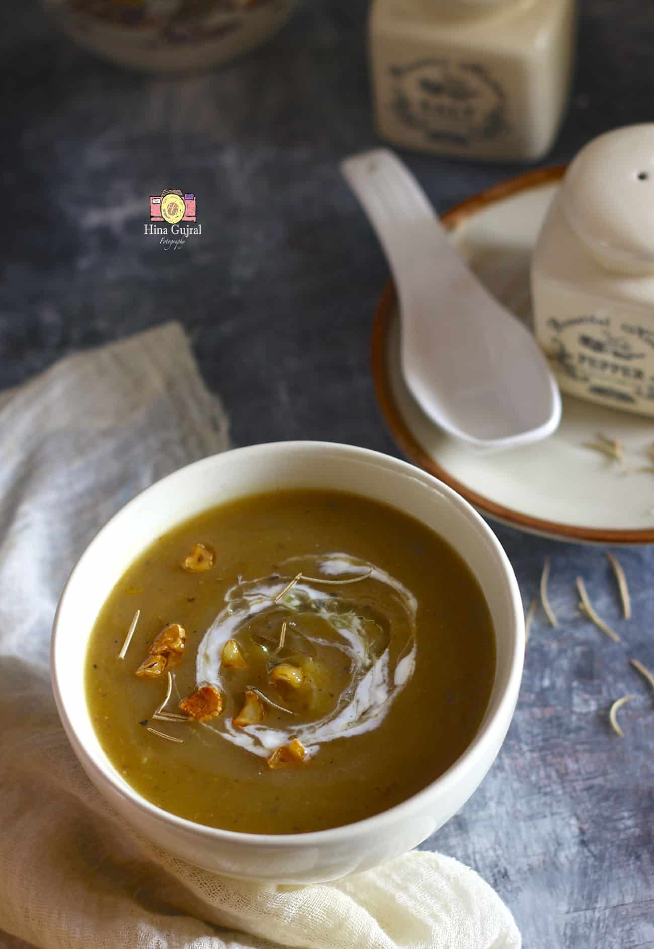 The soup can be garnished with toasted pepitas or a dollop of sour.